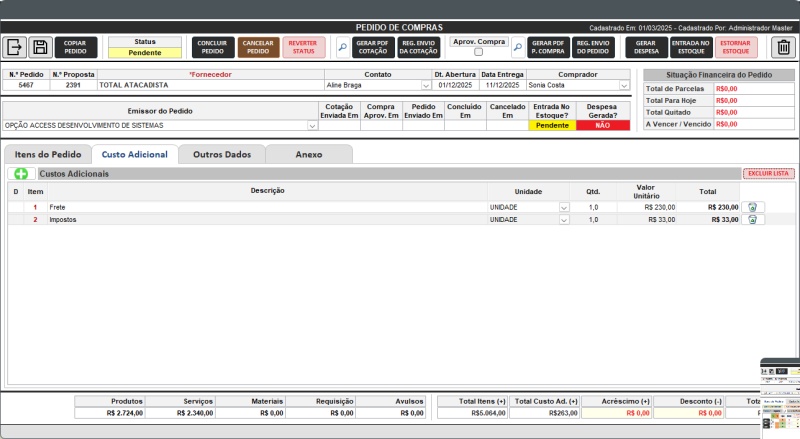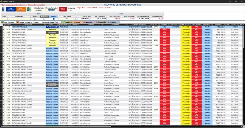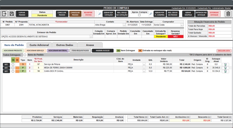 Gerencie pedidos de compra com inclusão de produtos, serviços, materiais, mão de obra e itens requisitados. Acompanhe requisições internas e compare preços entre fornecedores com o cadastro de comparativo. Gere PDF para cotação, controle a aprovação do pedido e finalize com o PDF do pedido de compra. Tenha uma visão estratégica com dashboard interativo e relatórios completos para apoiar suas decisões.