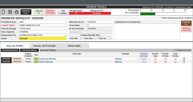 Organize sua operação com o cadastro de ordem de serviço, controle de estoque, almoxarifado e atividades não programadas. Tudo integrado para garantir agilidade, rastreabilidade e eficiência na execução dos processos produtivos